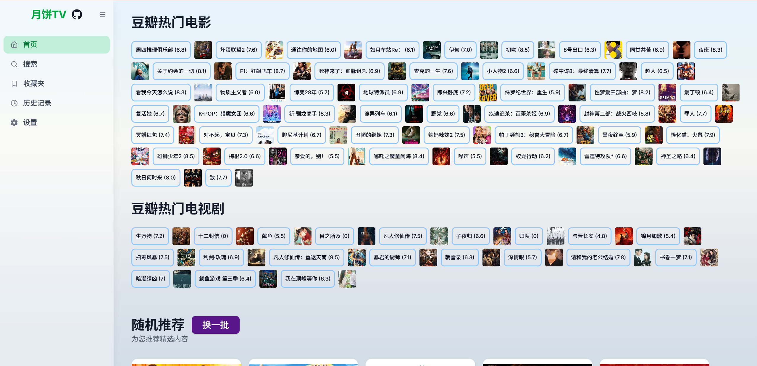 🎬 月饼TV 又叫 MoonCakeTV,是一个开箱即用的、跨平台的影视聚合播放器。它基于 Next.js 15 + Tailwind CSS + TypeScript 构建,支持多资源搜索、在线播放、收藏同步、播放记录、本地/云端存储,让你可以随时随地畅享海量免费影视内容。