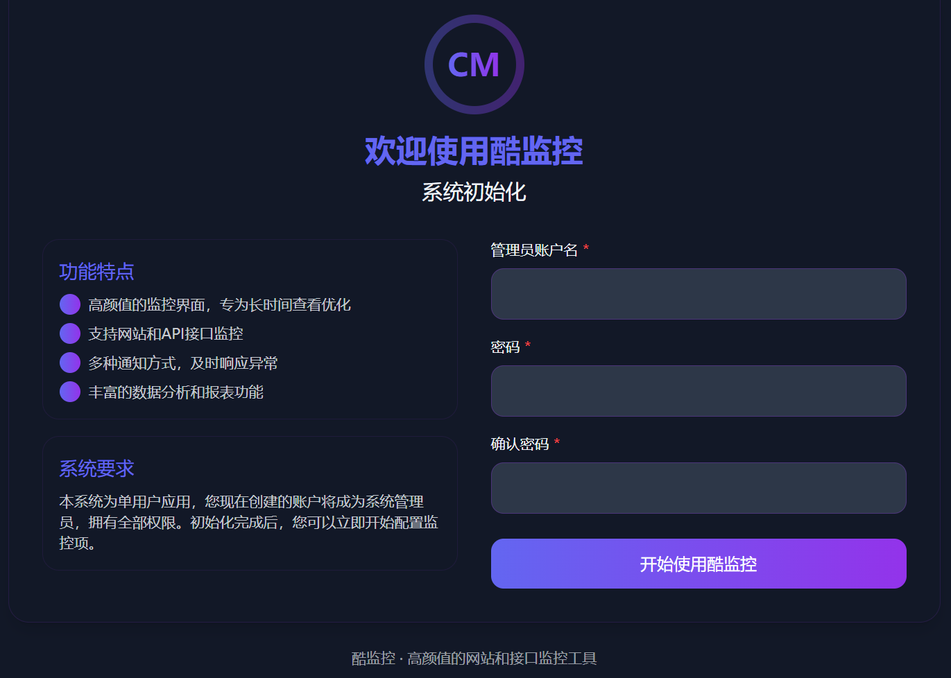 🖥️ 酷监控 是一个高颜值的监控工具,支持网站监控/接口监控/HTTPS证书监控等多种监控类型,帮助开发者及运维人员实时掌握网站/接口运行状态。本项目支持Docker一键快速部署,拥有美观现代的界面设计。
