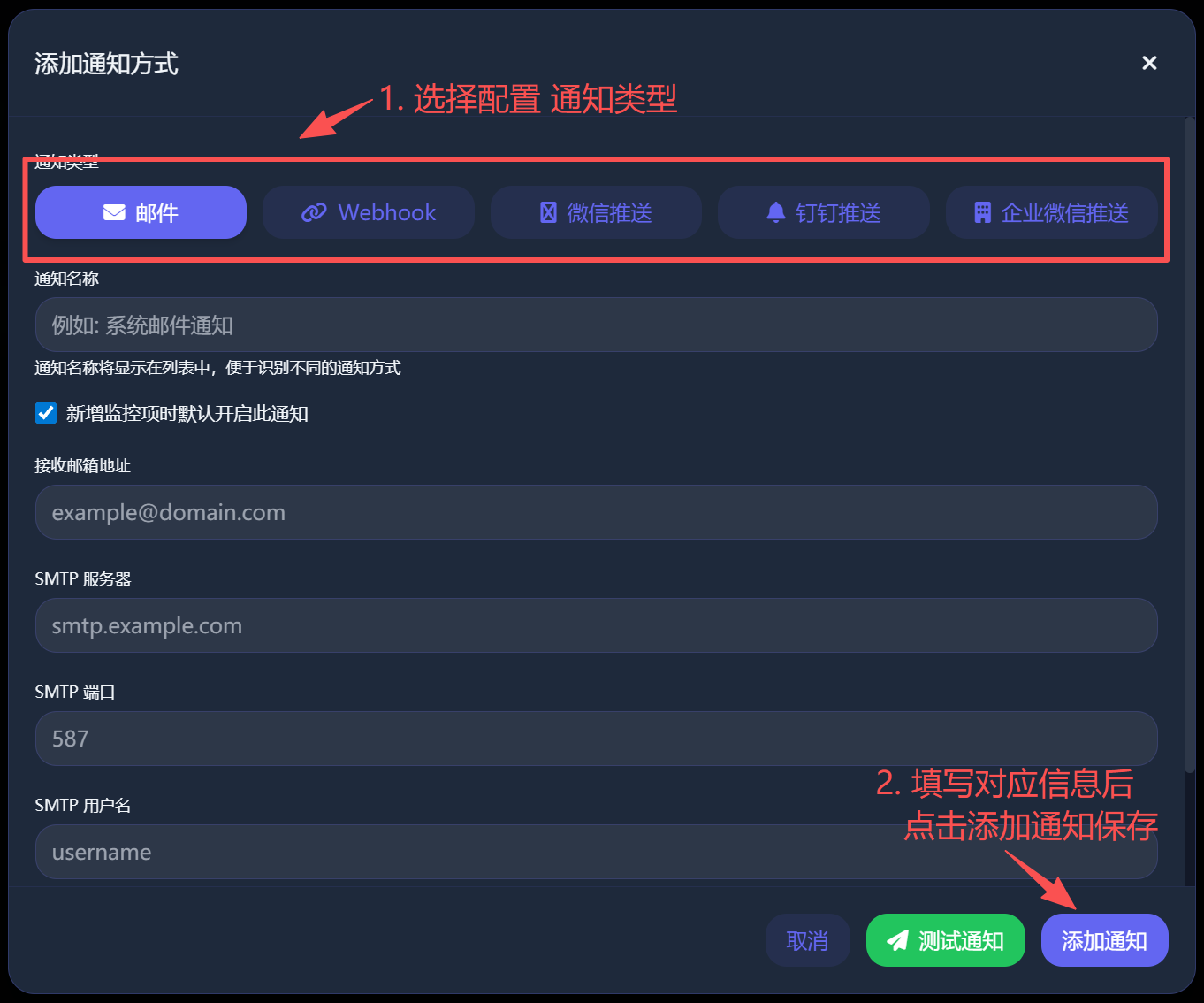 - 📬 强大通知系统:支持邮件、Webhook、微信通知渠道等多种通知方式