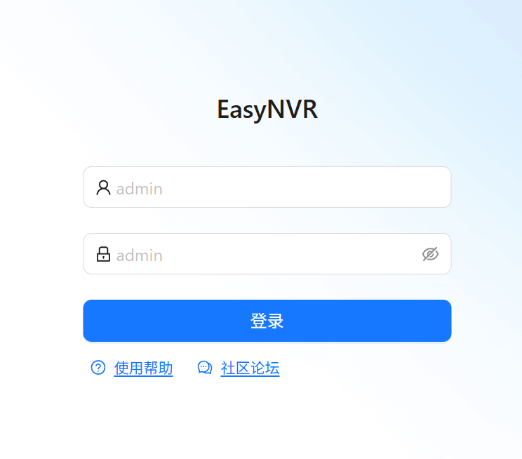 http://NASIP:10000打开 EasyNVR 登录页面。