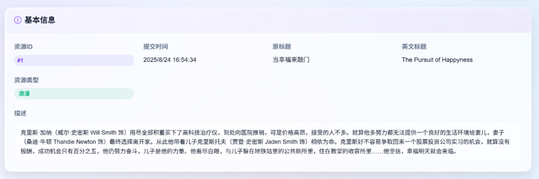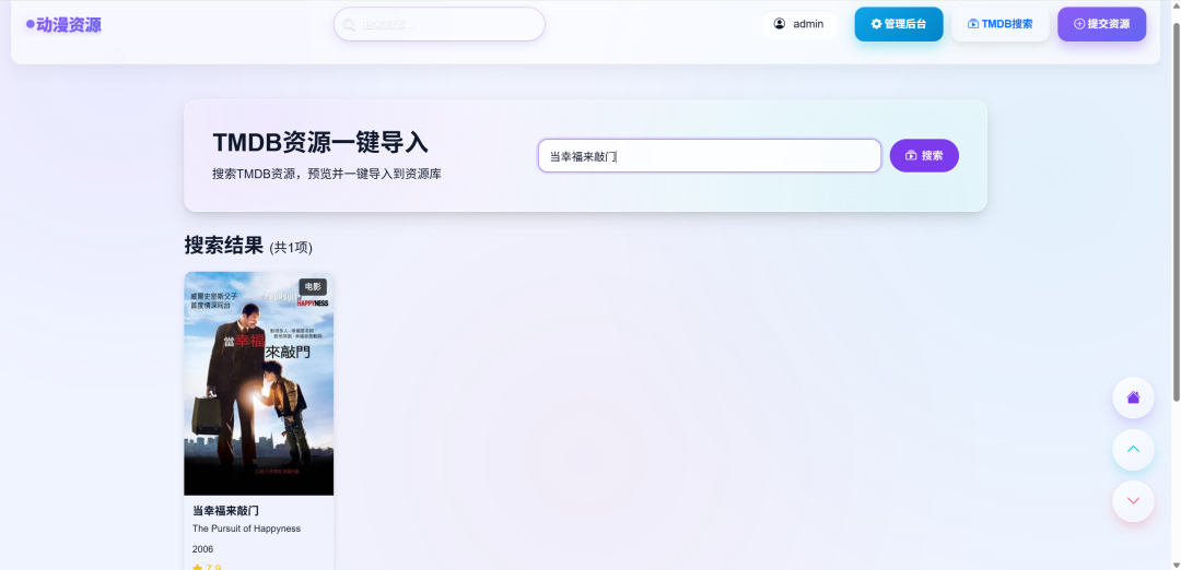 - 🧩 资源共建:用户可提交影视/动漫资源信息(标题、简介、封面图片、链接等),共同构建丰富资源库。