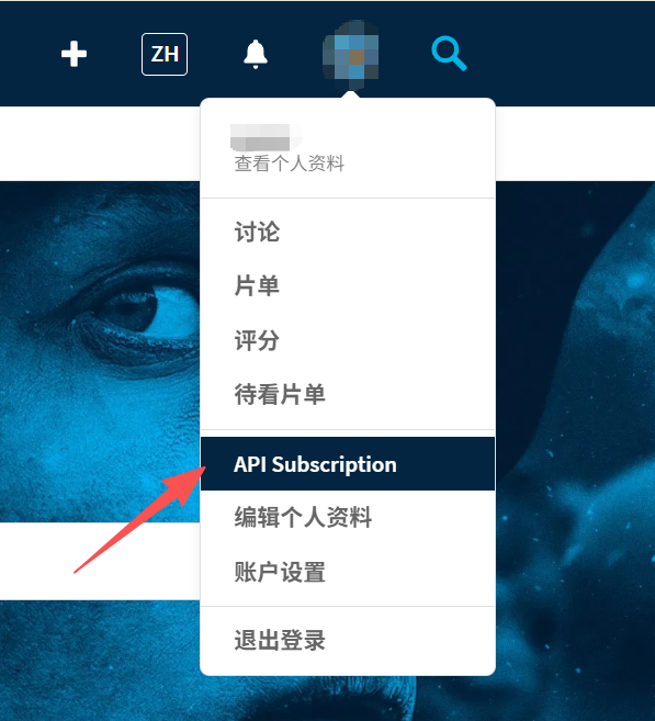 点击页面右上角图像图标,选择 API Subscription