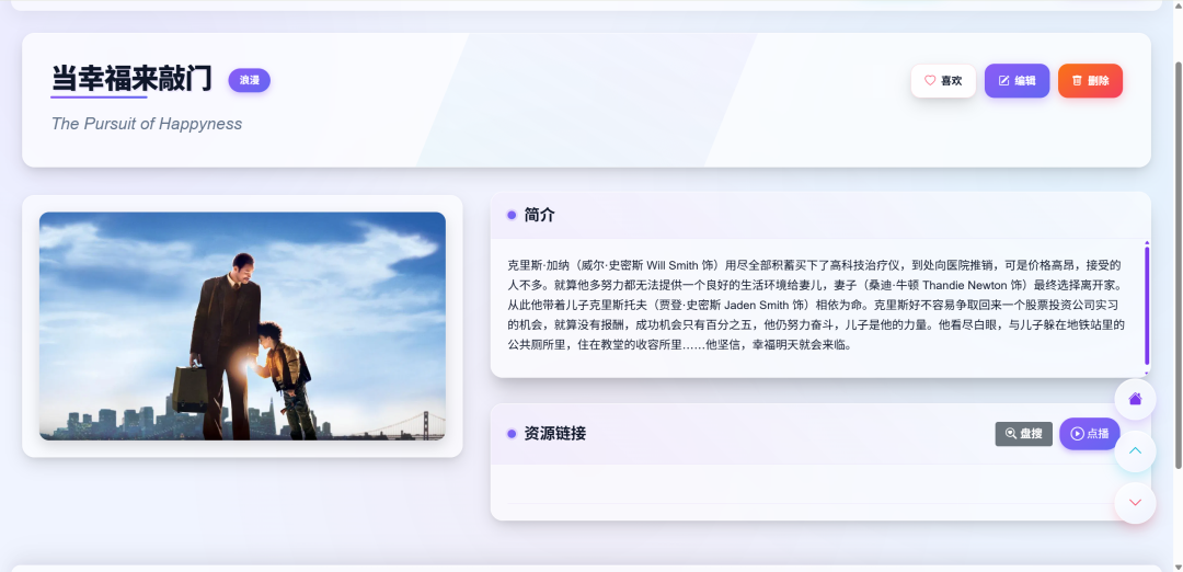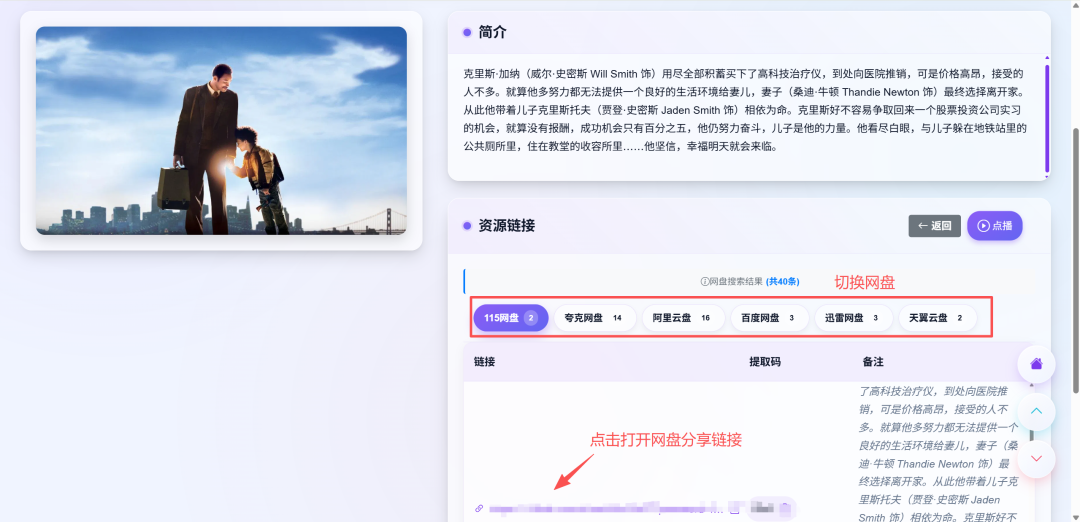 在网站首页点击具体资源的海报,进入详情页