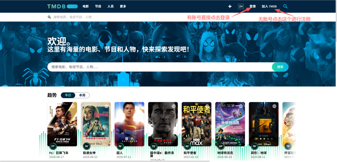 TMDB 官网: https://www.themoviedb.org