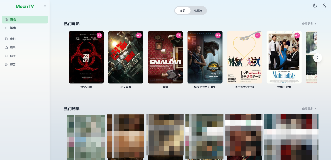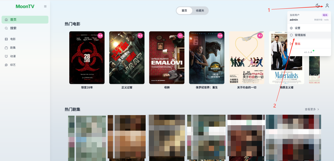 1. 输入上面部署设置的账号密码进入 MoonTV 首页