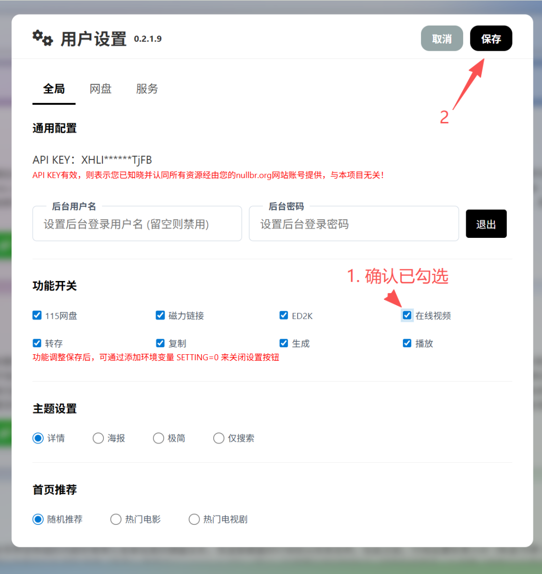 本项目也支持在线观看的,不过它的在线资源应该是启用的第三方,所以会夹带广告。项目作者很贴心,默认是没有开启在线视频的,而是强制需要输入“我不会相信视频中的任何广告”才能开启。