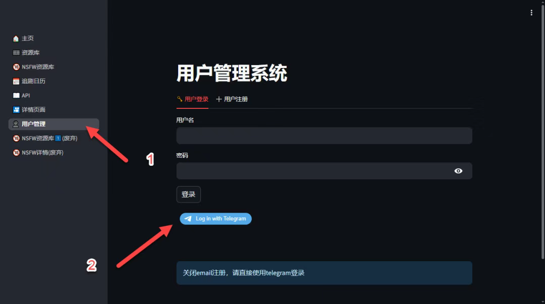 - 登录 Nullbr115 官网,通过 TG 账号注册登录(解决 TG 的问题就靠大家自行摸索啦~)。