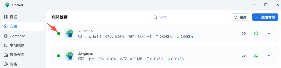 - 在容器菜单可以看到运行情况,点击右侧链接即可打开。