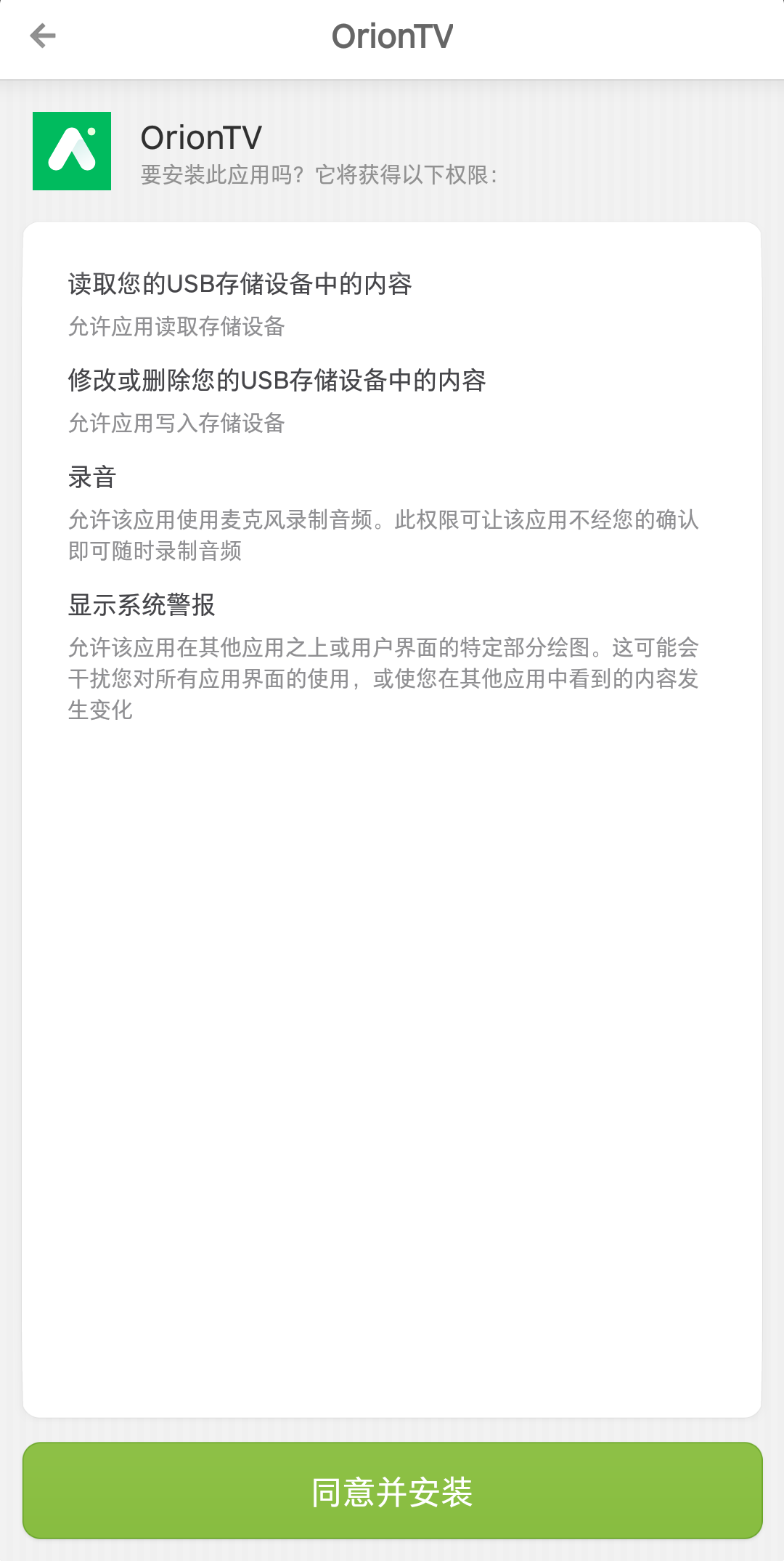 由于手头没有安卓电视,下面以安卓机安装 OrionTV 为例。