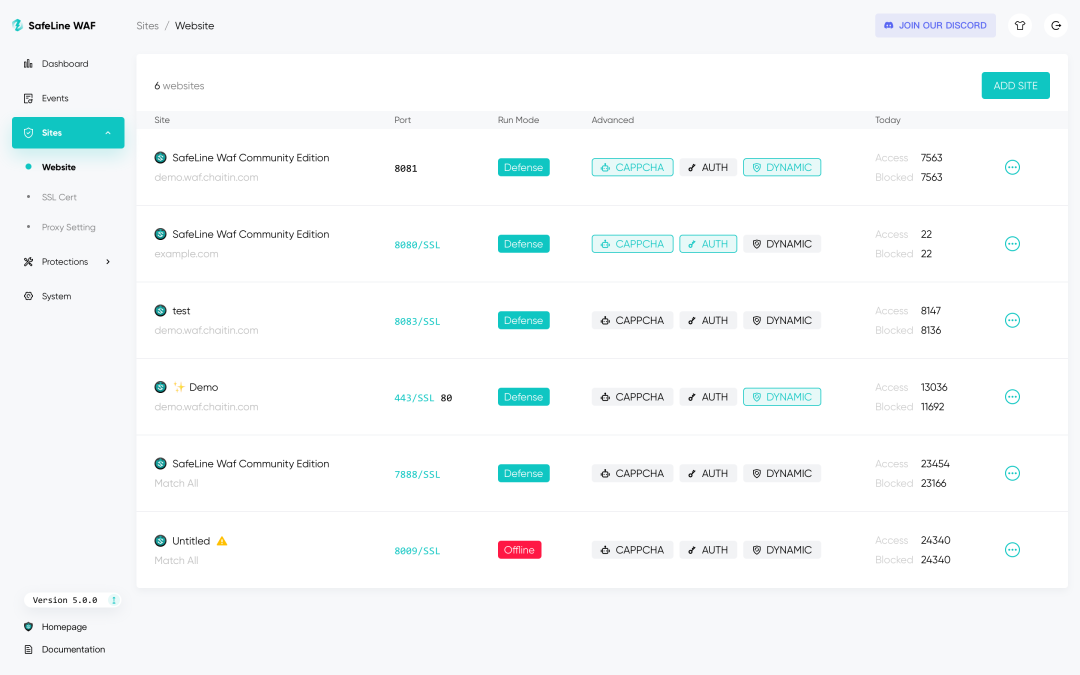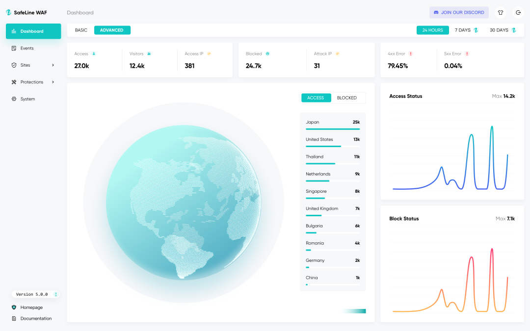 #### 9. 登录成功后,就可以进行设置。如何设置请参考 SafeLine 官方说明文档。