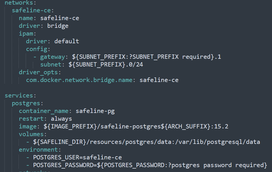 根据你的实际情况修改配置文件中的SAFELINE_DIR和POSTGRES_PASSWORD字段。