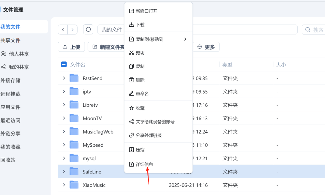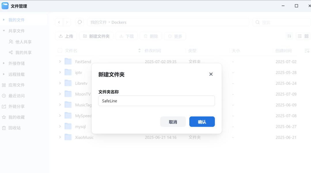 #### 1. 打开飞牛的 文件管理,新建文件夹用于存放 SafeLine 文件。