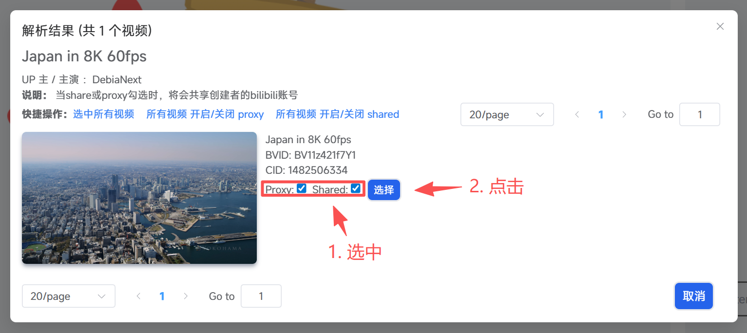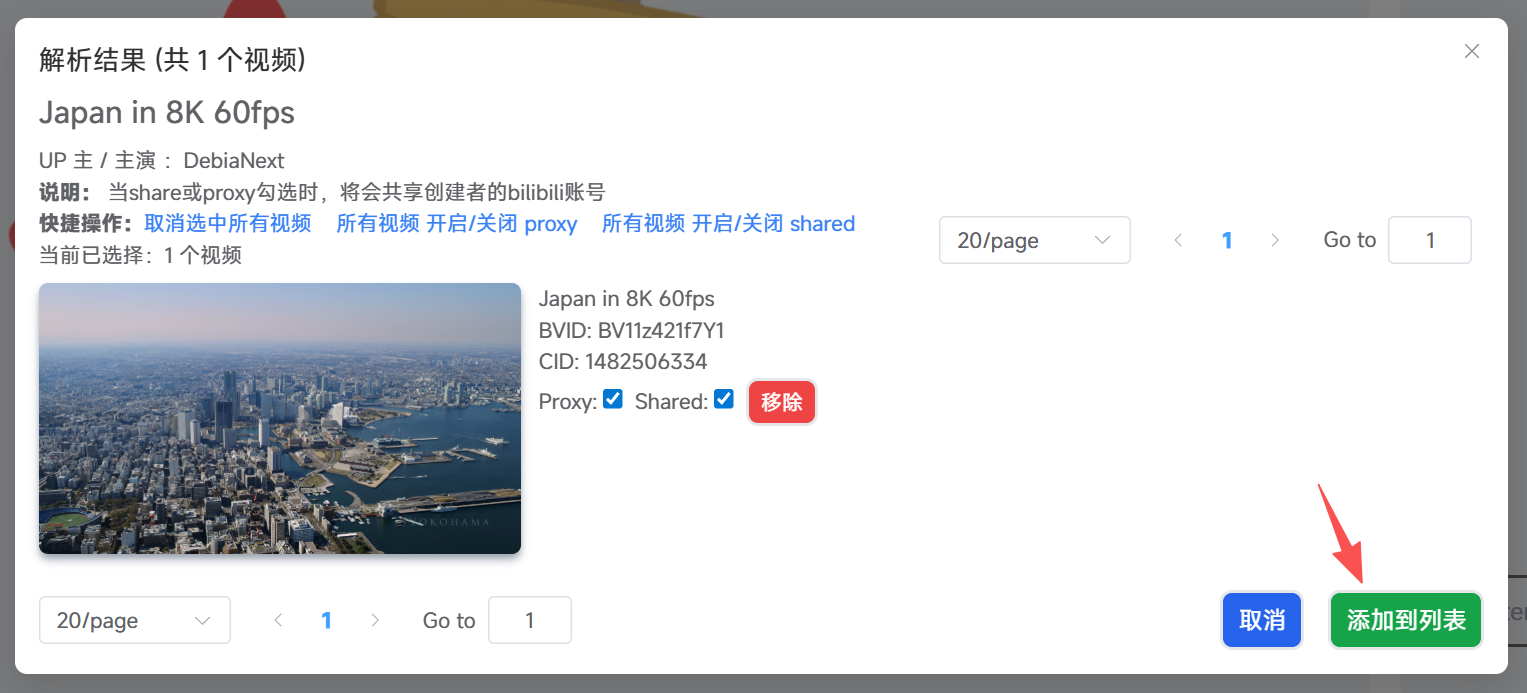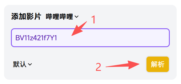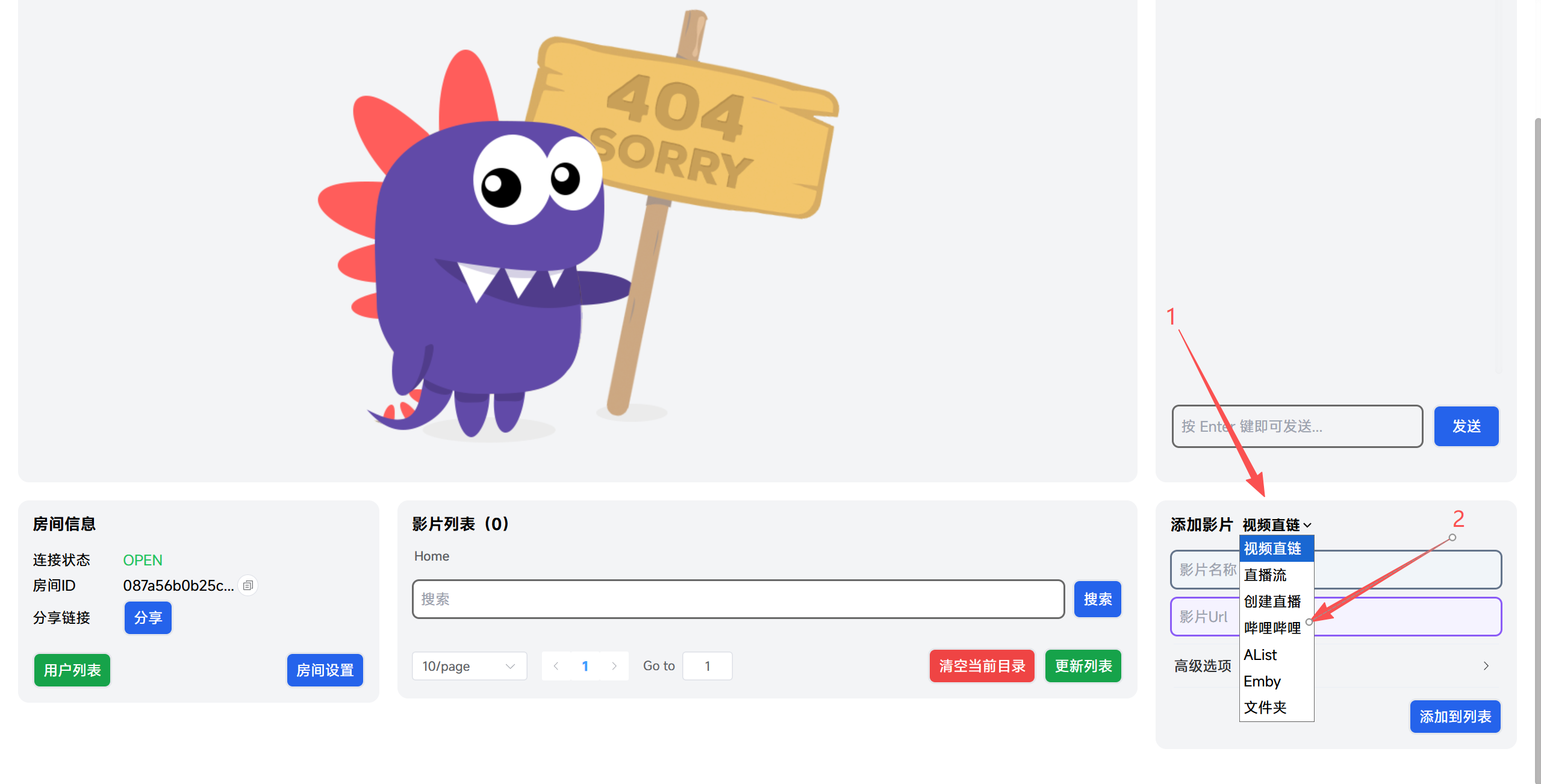 在页面右下添加影片 视频直连下拉框选中哔哩哔哩。这里如果绑定的是其它的平台,按需进行选择