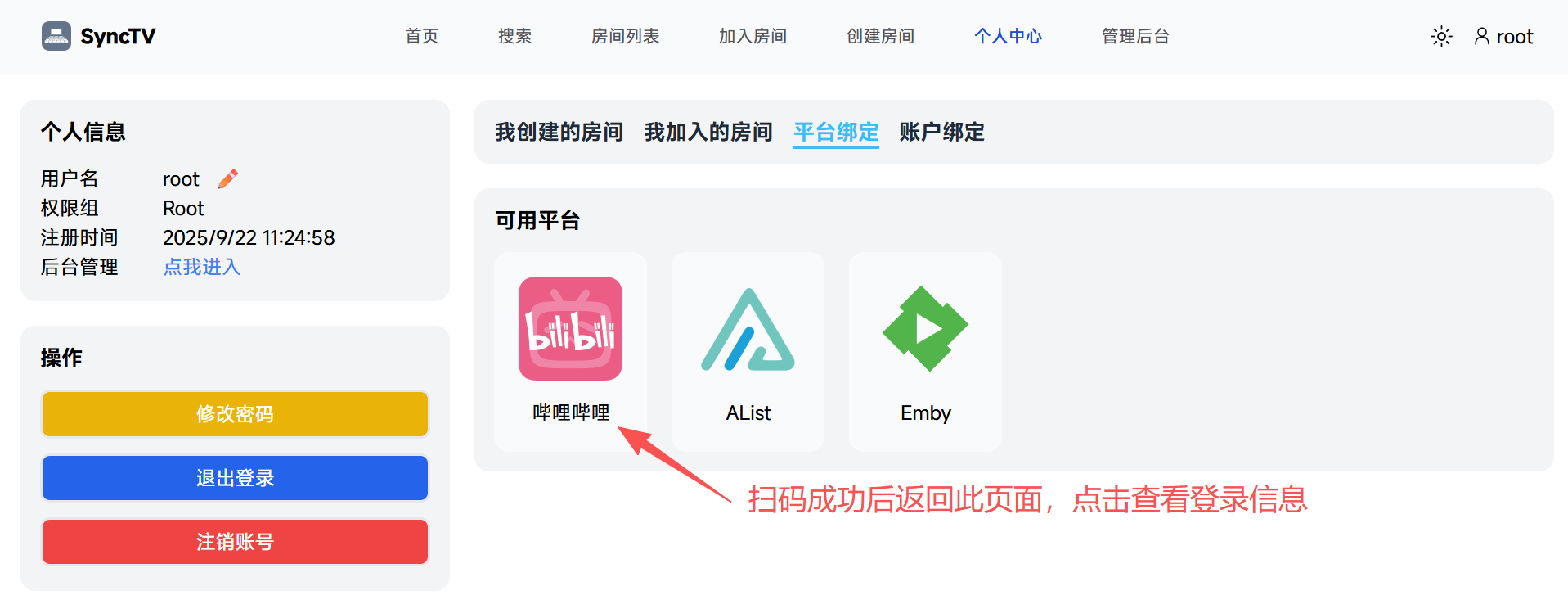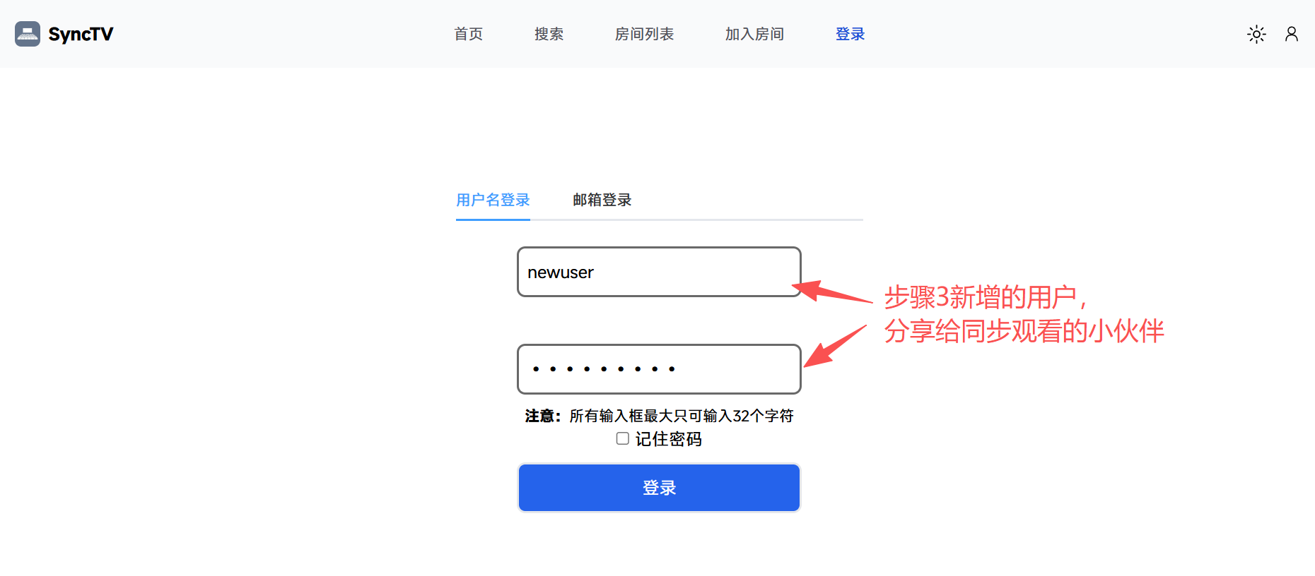 注意:部署在NAS需要公网DDNS或者内网穿透,不然只能在局域网进行分享同步观看。