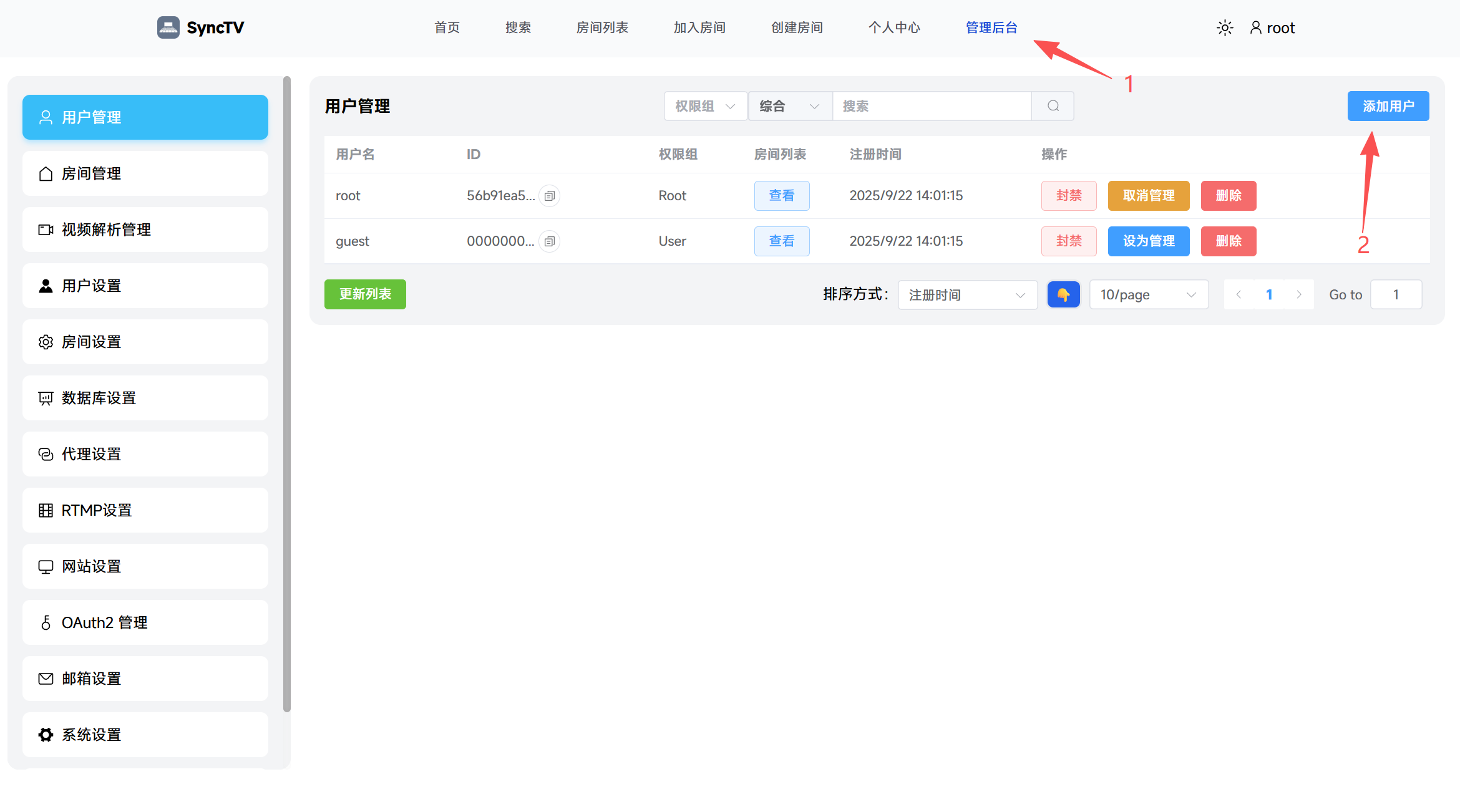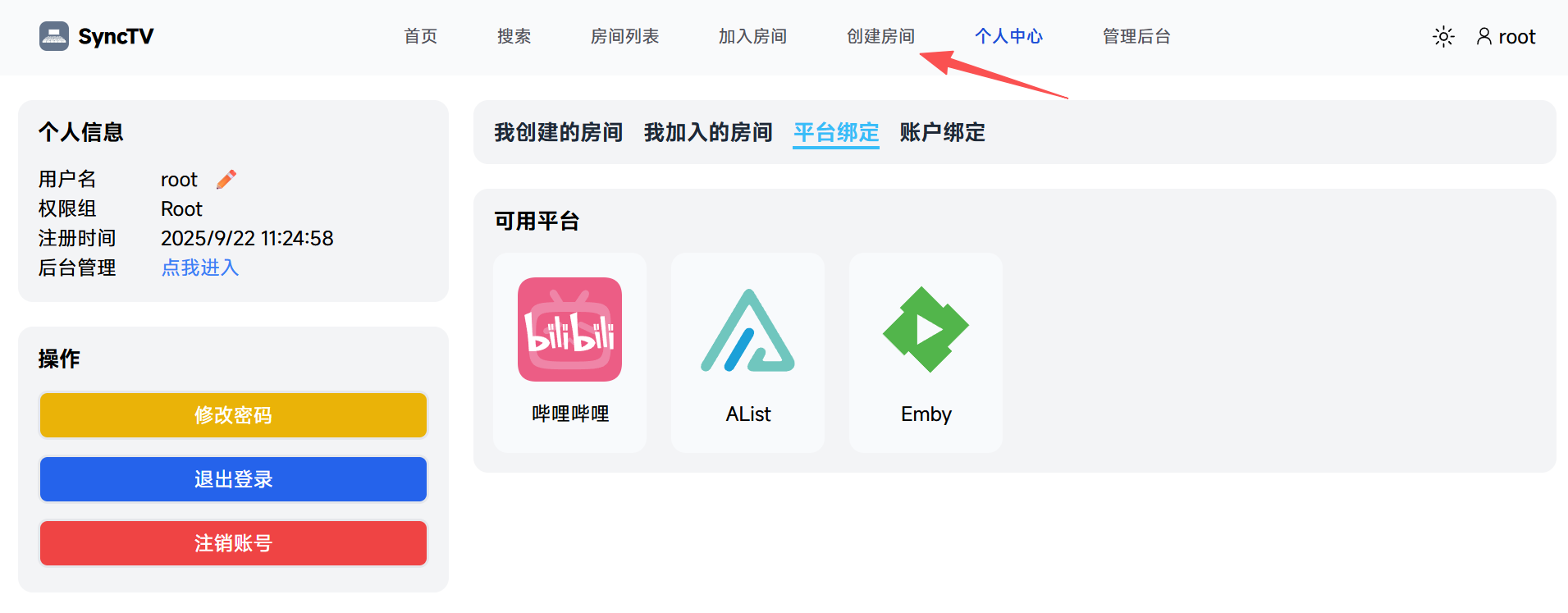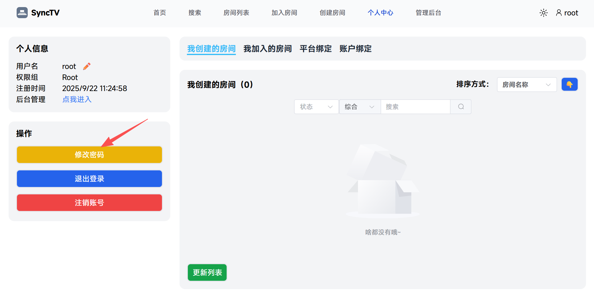synctvorg/synctv:latest8080:8080:冒号前端的端口可以改为其它端口,例如:8880:8080
