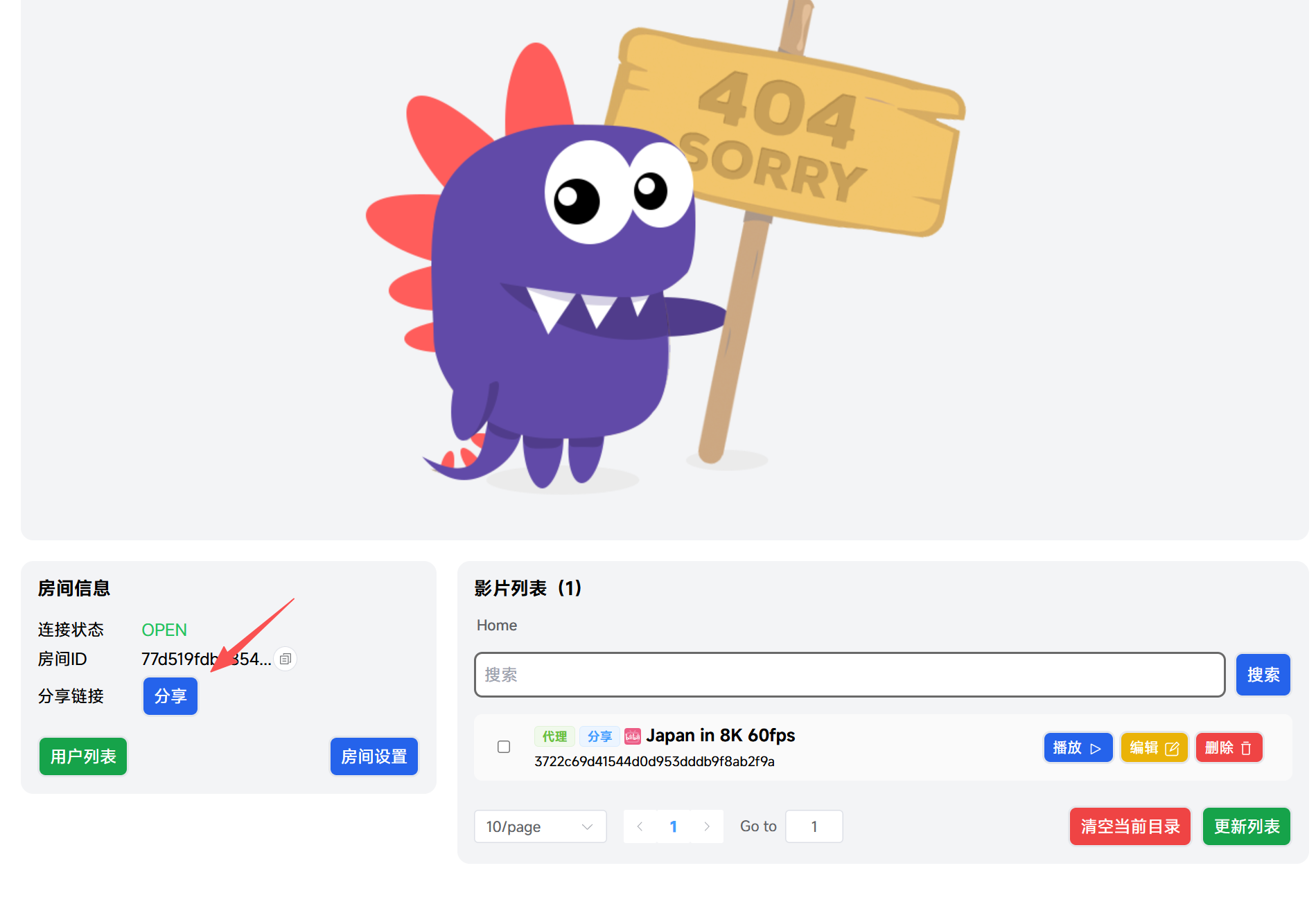 创建房间的用户进行视频播放,分享的另一台设备也会同步进行播放。