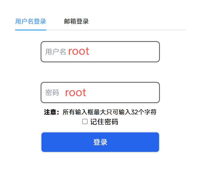 点击页面上的登录进行登录, 默认的用户名和密码:root