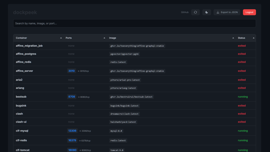 Dockpeek 是一款轻量级 Docker 容器端口映射仪表盘,支持多套接字管理、端口直达访问、安全认证、快速搜索及数据导出,界面简洁友好,提升多主机多容器环境下的管理与使用效率。