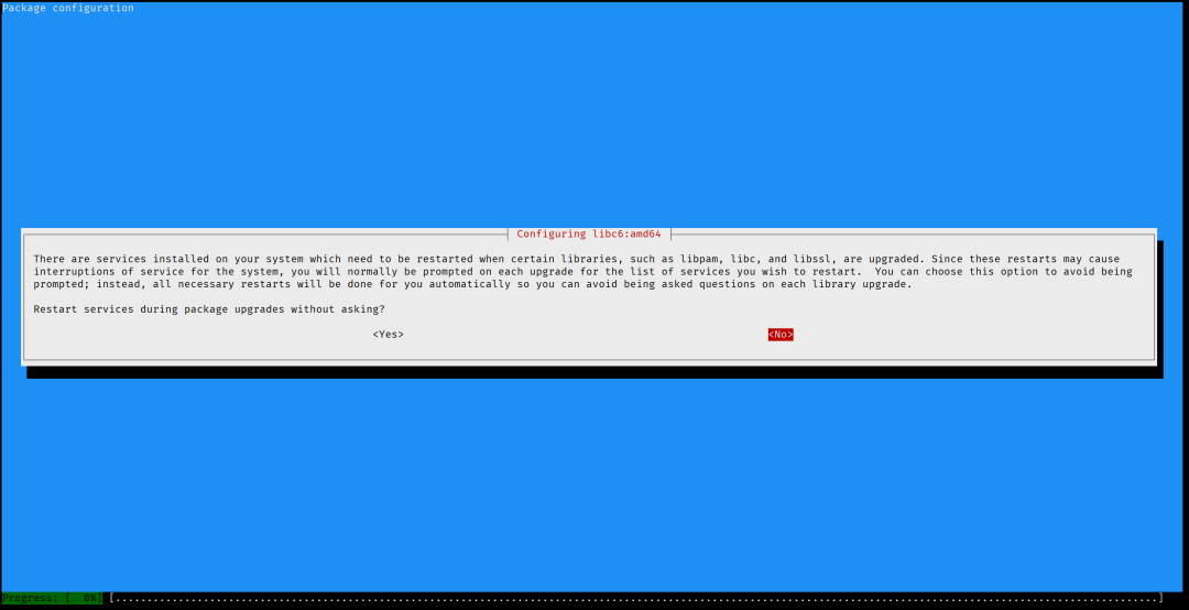 - 再次执行更新与全面升级,按提示选择是否更新配置文件和重启服务