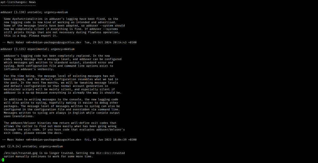 - 退出 apt-listchanges → 按
