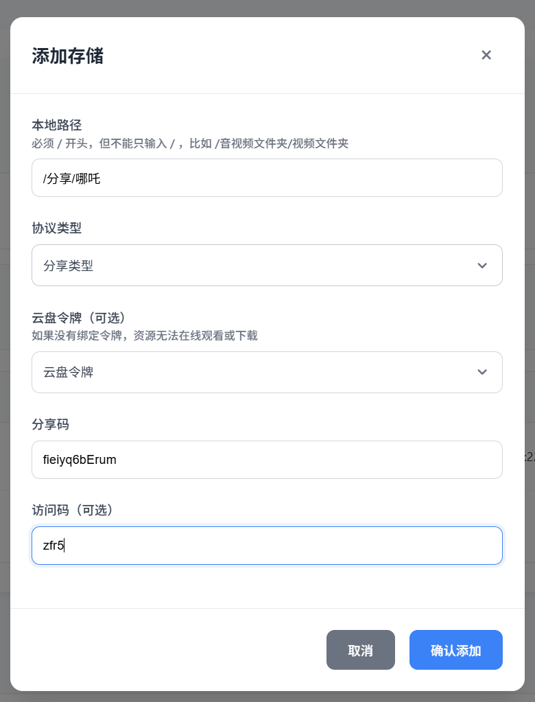 zfr5),如果分享链接没有访问码则留空关联令牌:选择之前添加的令牌