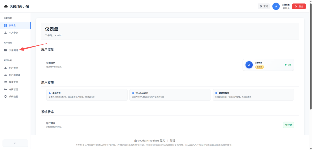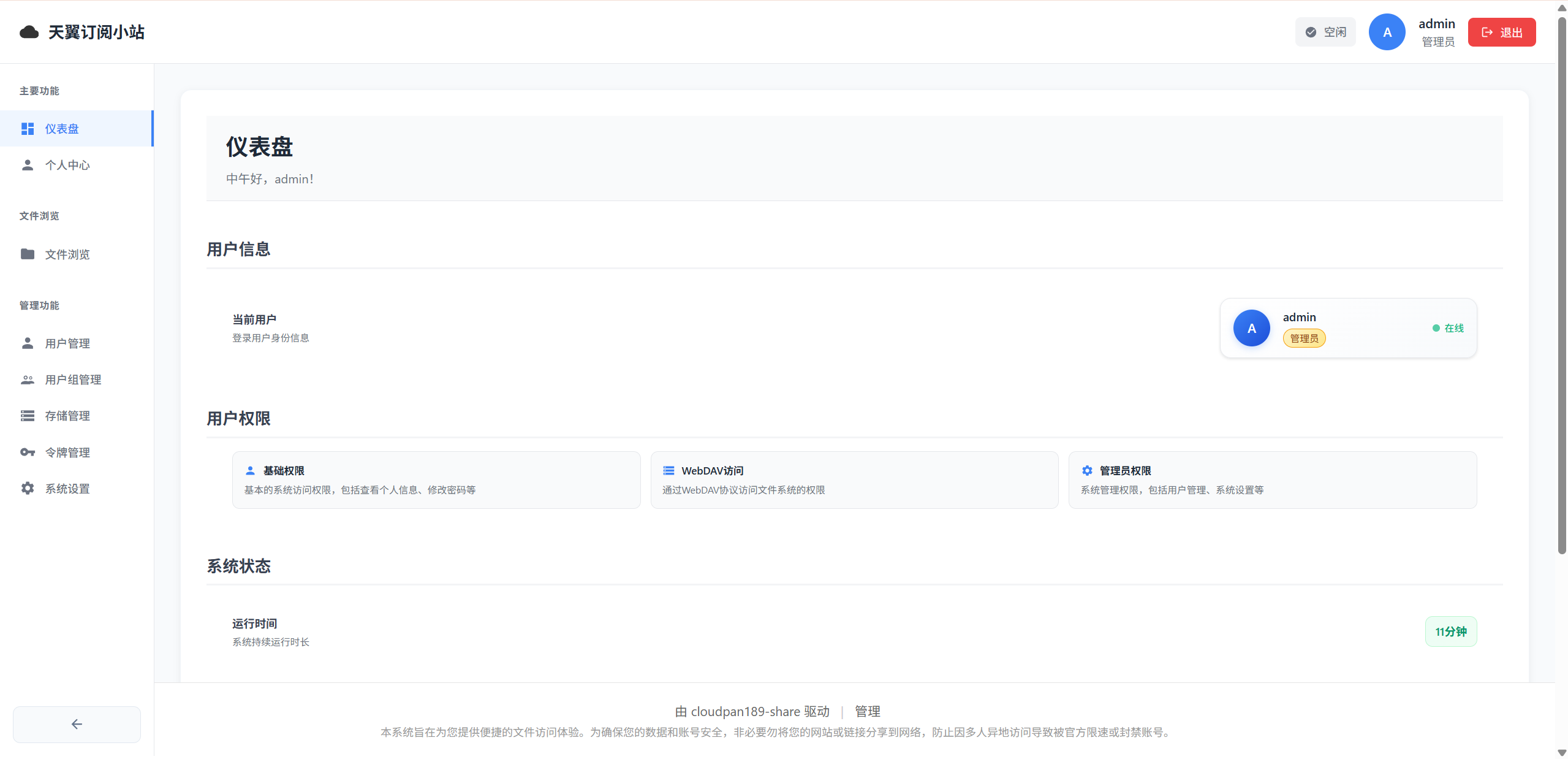 现在已经完整的部署好并能够正常使用,如果有进阶需求可以参考 CloudPan189 Share 快速开始文档